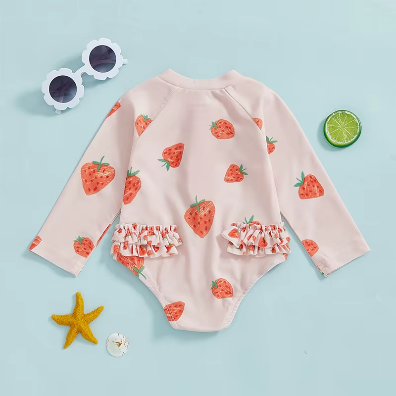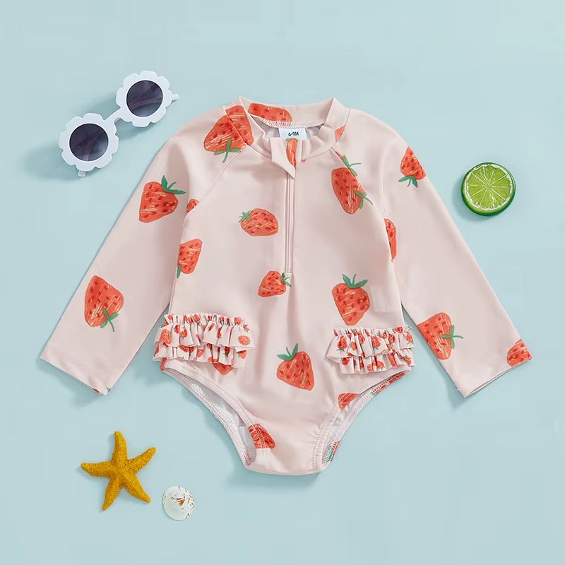 Offrez à votre petite une touche de douceur avec notre maillot de bain bébé fille à motifs de fraises. Ce maillot de bain bébé fille capture l’essence de l’été avec ses motifs joyeux de fraises sur un fond beige, combinant confort et un style adorable pour les premières aventures.