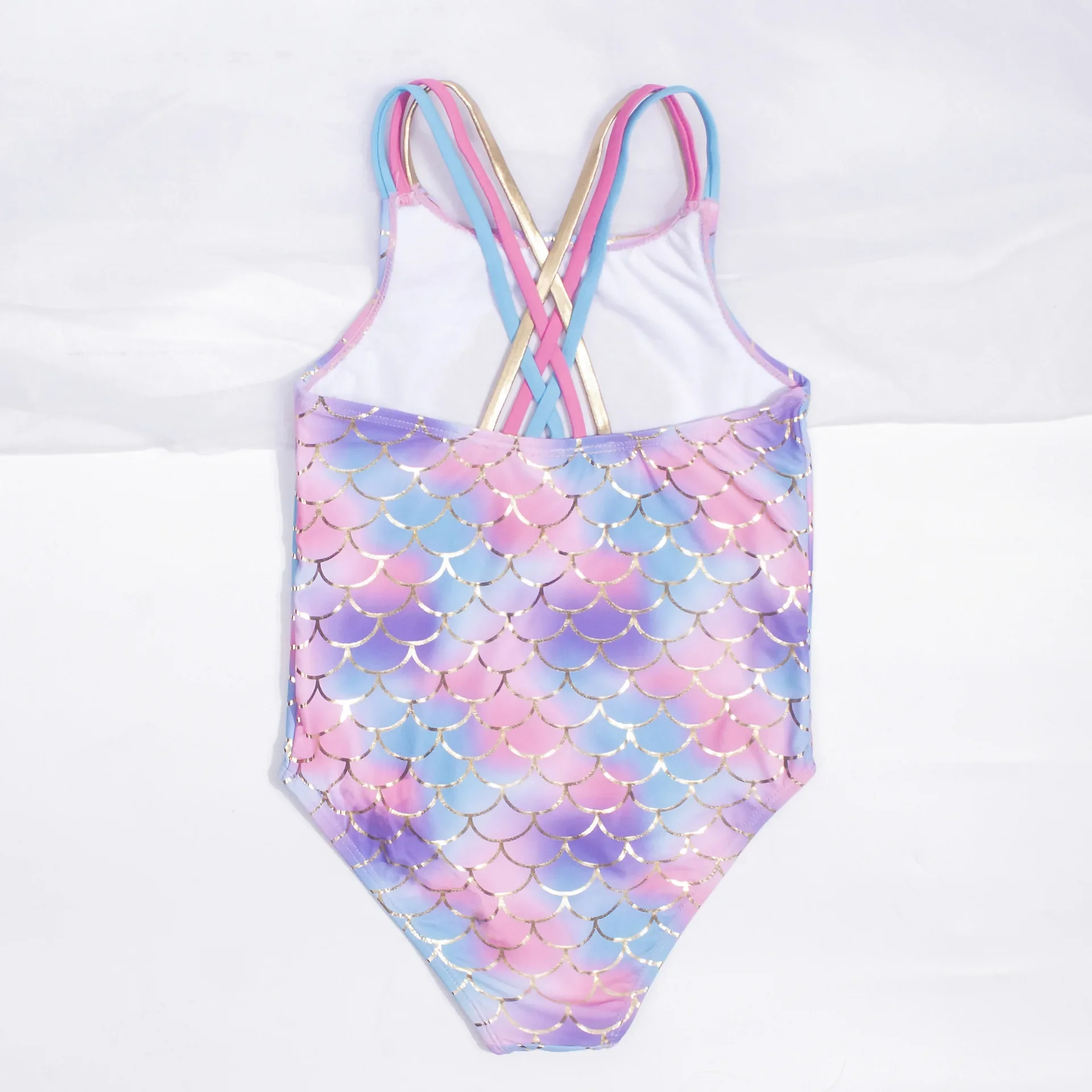Plongez dans un univers de féerie avec notre maillot de bain sirène une pièce, où les couleurs vives de violet, rose et bleu se fondent dans un dégradé enchanteur, rehaussé de motifs d’écailles dorées. Ce maillot de bain sirène est un véritable accessoire de rêve pour votre petite sirène.