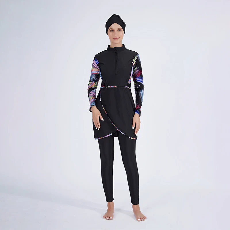 Notre burkini trois pièces vous offre la liberté grâce à une coupe et un tissu très confortables. Cet ensemble trois pièce vous permet de profiter pleinement de l'eau et de la plage, en étant libre de vos mouvement et en restant fidèle à votre foi. Plongez avec confiance dans ce maillot de bain moderne et pratique.