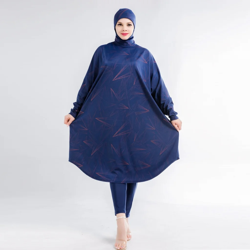 Le maillot de bain burkini au design moderne se distingue par son allure audacieuse et raffinée. Les motifs géométriques sur fond bleu créent un visuel captivant qui attire l'œil, tout en restant élégant et subtil. Ce choix de design fait de ce burkini une pièce maîtresse de la mode estivale, idéale pour celles qui recherchent un vêtement qui reflète leur personnalité dynamique et leur goût pour l'esthétique moderne.