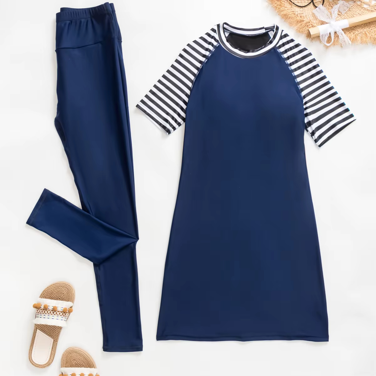 Pour une journée à la plage, une séance de natation à la piscine ou un après-midi de sports nautiques, ce burkini à rayures est votre compagnon idéal. Son design pratique et confortable le rend parfait pour toutes sortes d'activités aquatiques, offrant à la fois style et fonctionnalité.