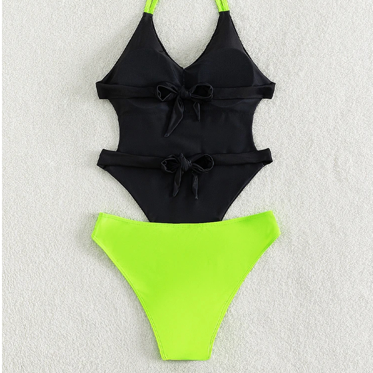 Le décolleté ajoute une touche de sensualité subtile, tandis que le dos échancré à noeuds ajoute une touche de glamour au maillot de bain. La matière douce et extensible épouse parfaitement votre silhouette, vous permettant de bouger librement et confortablement dans l'eau. Il est également doté d'une doublure intégrée pour éviter toute transparence gênante.