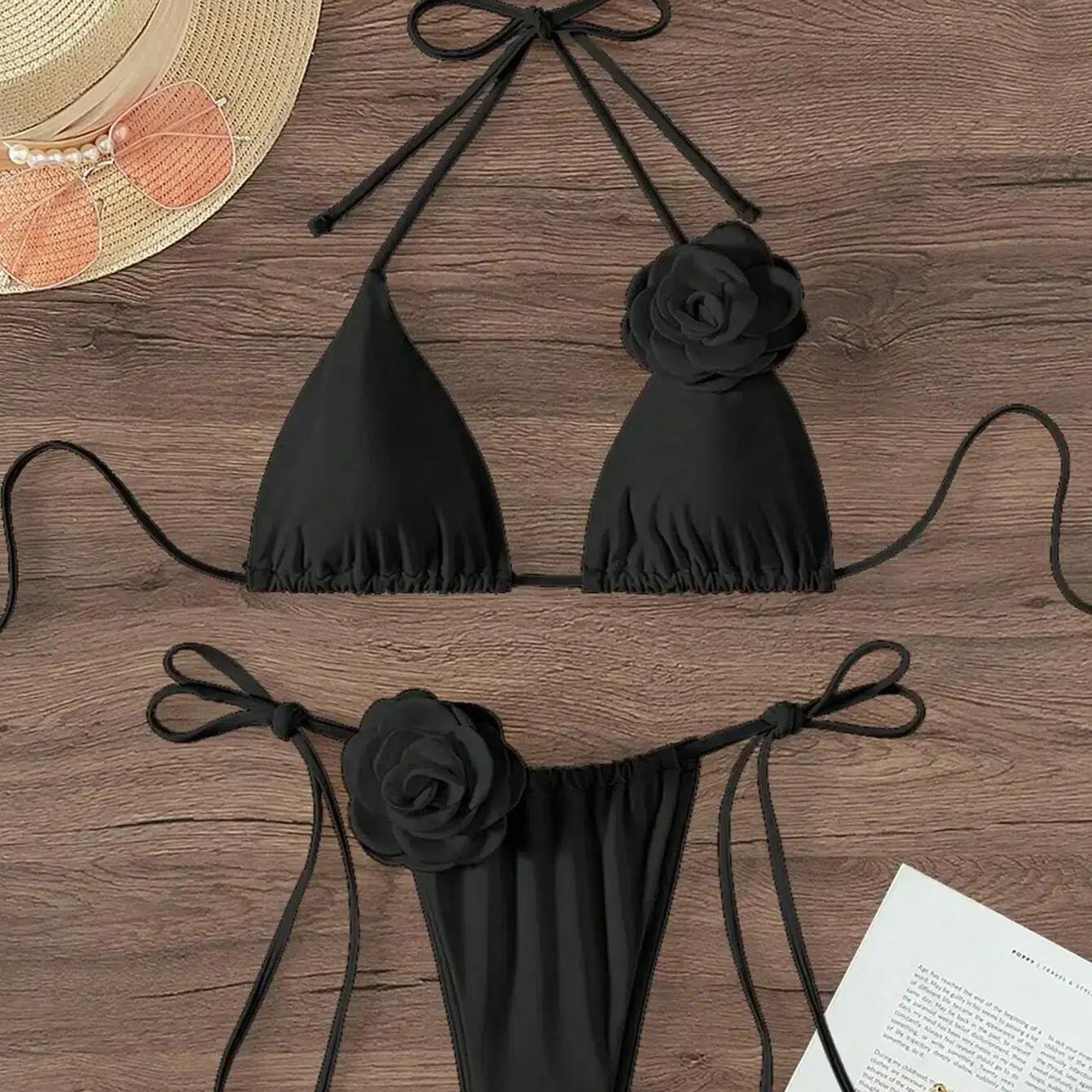 Ce maillot de bain ficelle micro bikini push up et rose en 3D est conçu pour les femmes raffinées qui veulent aussi être sexy : le design et les couleurs sobres et unies du maillot plus les roses en 3D et les ficelles concoctent un mélange harmonieux entre le côté sexy hot et la sagesse élégante. Parfait pour la plage ou la piscine, il sera votre choix numéro 1.