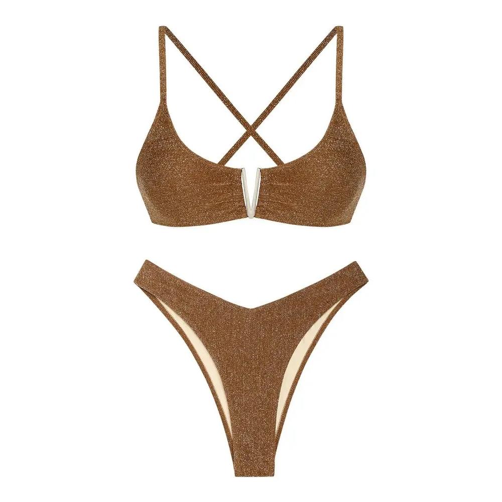 Ce maillot de bain pailleté avec décolleté en v est polyvalent. Il se marie parfaitement avec divers accessoires : chapeaux élégants, lunettes tendance ou paréo assorti peuvent être ajoutés pour créer une tenue irrésistible. Vous pouvez également le porter lors d'une soirée pool party ou associer le haut avec une jupe ou un short pour créer un look de plage chic et décontracté.