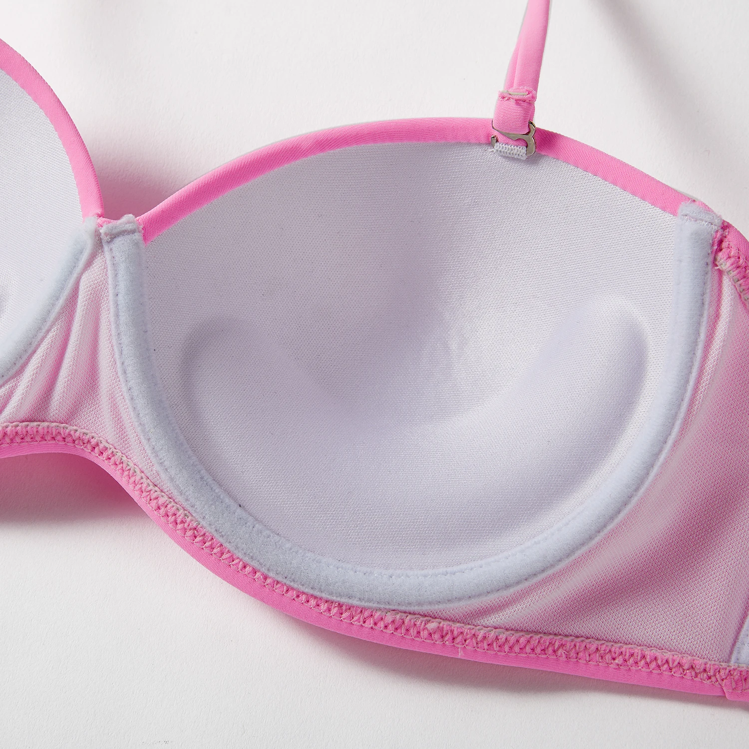 Les deux pièces de ce maillot de bain push up duo de rose sont parfaitement assorties, pour créer un ensemble harmonieux et stylé. D'autre part, le haut de notre maillot de bain est équipé de bonnets push up rembourrés pour vous offrir un soutien optimal tout en rehaussant votre poitrine de manière naturelle pour que vous soyez encore plus séduisante.