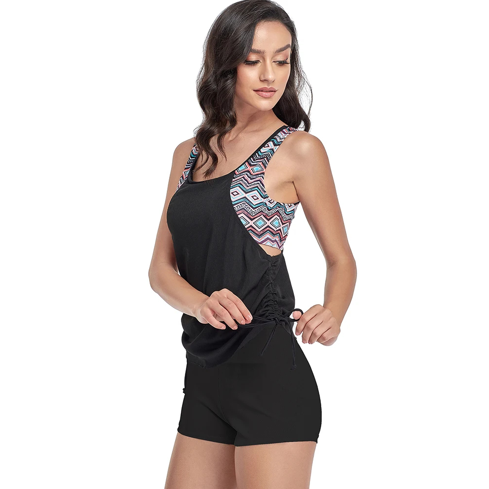 Ce maillot de bain tankini avec empiècement à motif est très fonctionnel. En effet, il est résistant au chlore et aux rayons UV, ce qui signifie qu'il conserve sa couleur et sa forme même après de nombreux lavages et expositions au soleil. De plus, il offre une excellente couverture pour prévenir les éventuels coups de soleil.