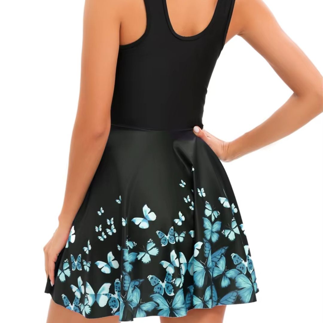 Découvrez le maillot de bain tankini à imprimé de papillons, un alliage parfait de style et de fonctionnalité. Ce maillot de bain tankini en spandex et polyester offre un confort optimal tout en affichant un design exquis avec ses papillons délicatement imprimés sur fond noir.
