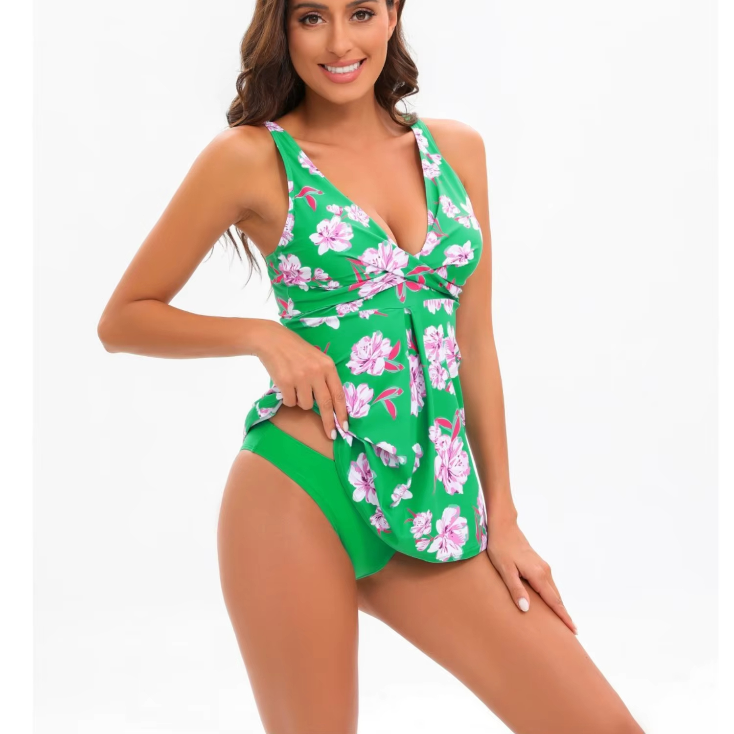 Maillot de Bain Tankini Vert à Imprimé Floral