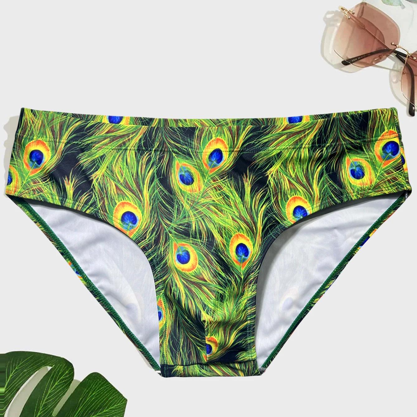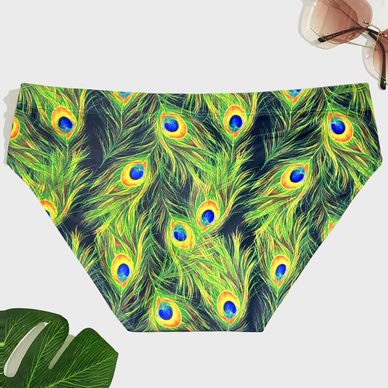 Maillot de bain moulant de piscine pour homme motif plume de paon