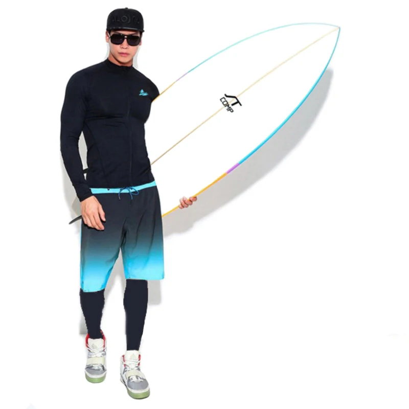 Notre maillot de bain islamique noir avec dégradé bleu est équipé d'un cordon de serrage à la taille pour un ajustement personnalisé et d'une fermeture éclair discrète à l'avant pour faciliter l'enfilage et le retrait. Il est également disponible en plusieurs tailles ce qui permettra à chaque homme de trouver un modèle qui lui convient.