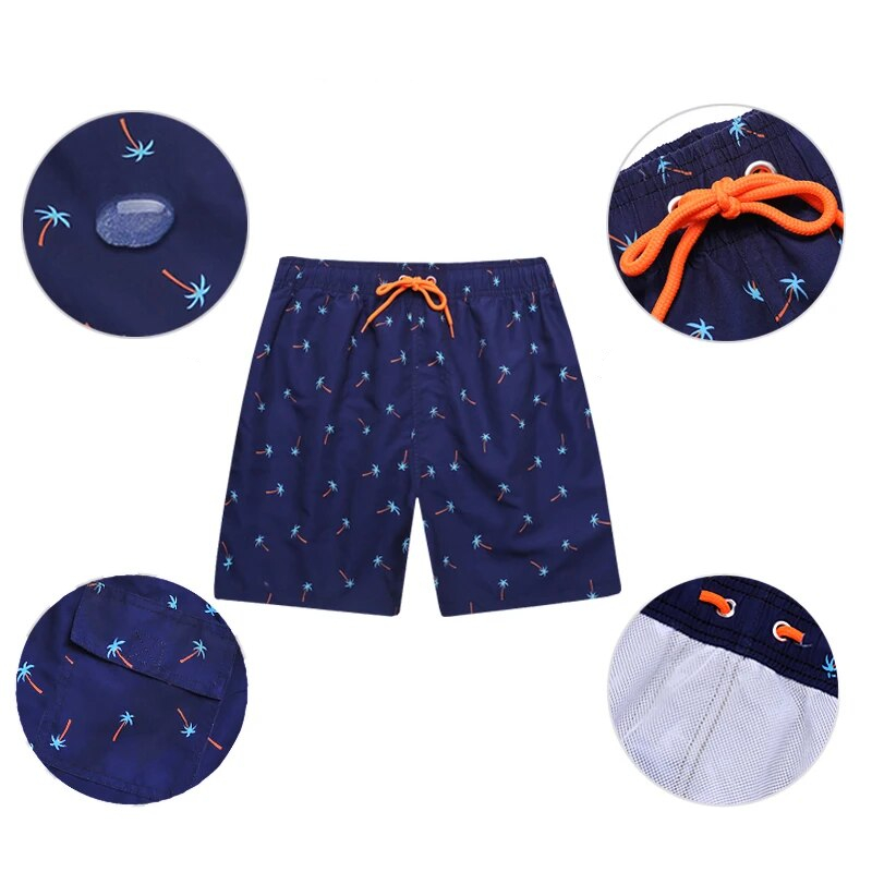Vous recherchez un maillot de bain une pièce, à la fois tendance et masculin ? Optez pour ce superbe short de bain bleu marine à l’imprimé palmier aussi confortable que respirant. Sa coupe droite et ses poches seront idéales pour se sentir à l’aise sur le bord de la plage ou à la piscine.